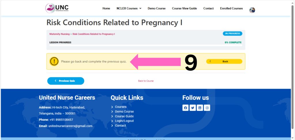 Move to the Next Lesson: After completing the quiz for a lesson, you’ll be able to access and move on to the next lesson in the course. If you not complete the previous topic.